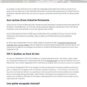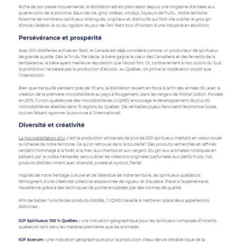 Les produits québécois n’ont jamais bénéficié d’une cote d’amour aussi forte et les producteurs d’ici ont le vent dans les voiles! Devant cette offre florissante, la SAQ a décidé de segmenter les produits du Québec en trois catégories afin de mieux refléter les spécificités de fabrication et de production propres à chacun. L’espace publicitaire vise à mettre en valeur et faire connaître les catégories.